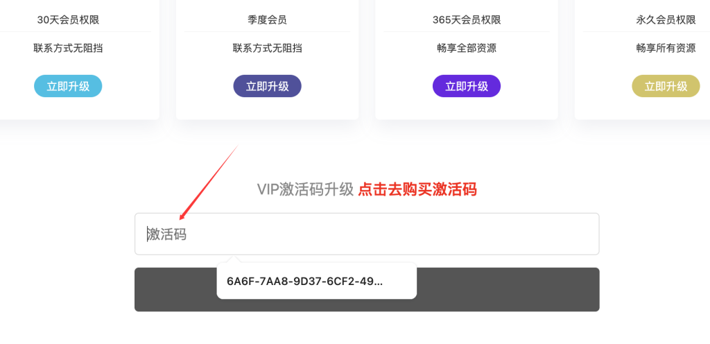 注意:如果购买激活码后,不小心了关闭了页面,可以在这里去查询你购买的激活码。 点我去查询 输入你购买的订单号或者qq号码 手机号等。 客服电报:idaugus 点击在线联系我们 1.先注册登陆好本站的账号密码。 2.点击去购买激活码:点我去购买 3.我已经有激活码了:点我去激活 4.来到vip激活页面,粘贴你购买的激活码点击立即升级即可!